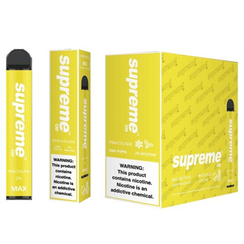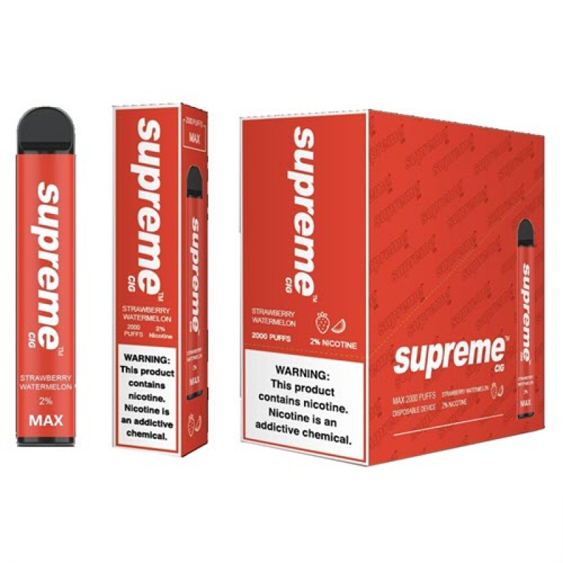 Supreme MAX disposable vape pod system device that is pre-filled, compact, pocket-friendly size and easier to carry. The Supreme MAX Disposable 2000 puffs is powered by 950mAh built-in battery and 6ml pre-filled pod with tasty e-liquid. Check out our collection of disposable vape bundles.