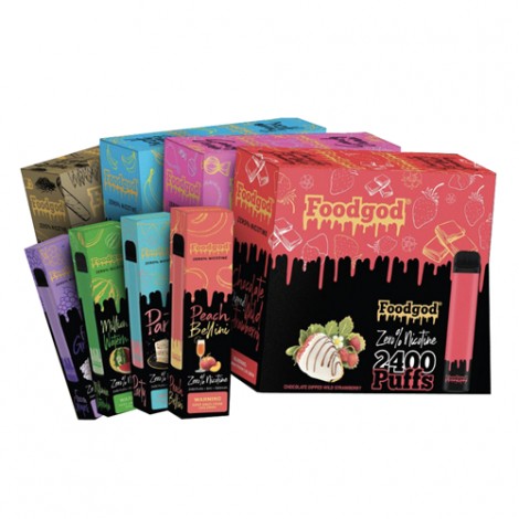 Foodgod ZERO 0% disposable vape pod system is pre-filled with unique flavors and contains 0% nicotine.  It's compact, pocket-friendly size and easier to carry.  The Foodgod ZERO 0% Disposable 2400 puffs is powered by 1000mAh built-in battery and 8ml pre-filled pod with tasty e-liquid.  Check out our collection of disposable vape bundles.