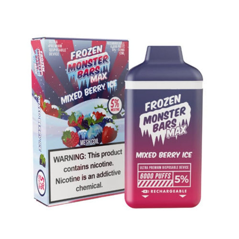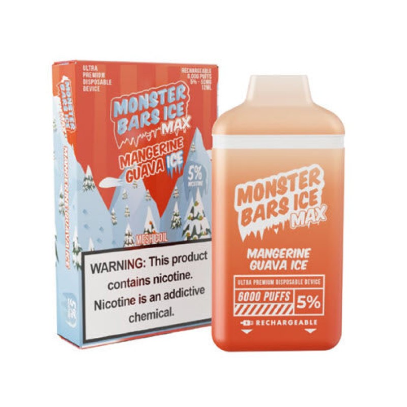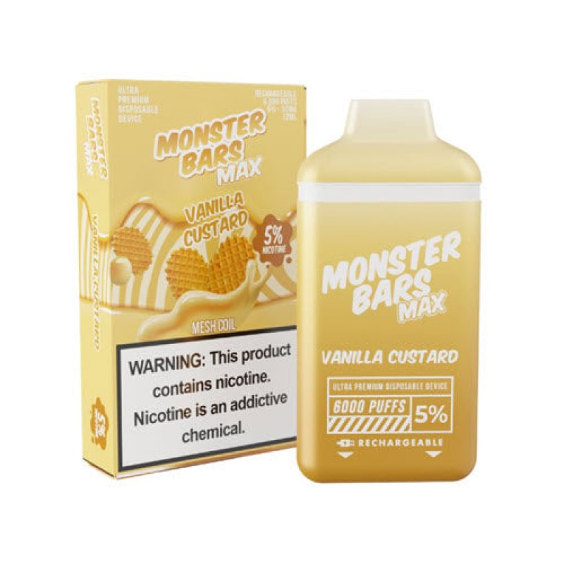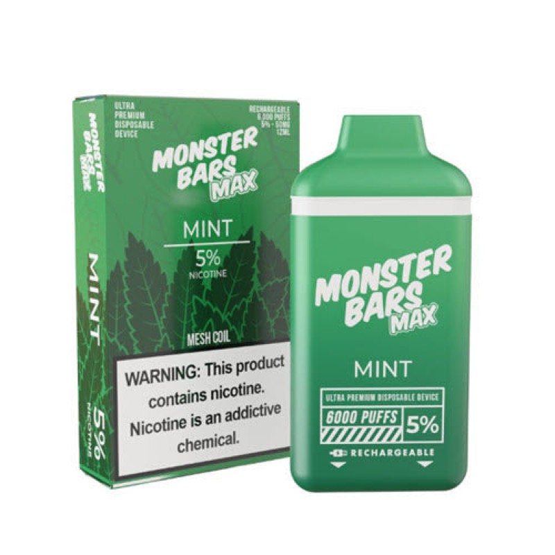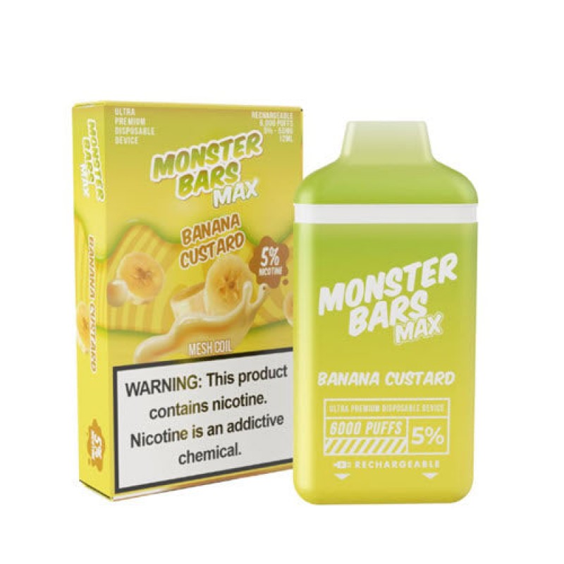 Monster Bars MAX disposable vape pod device by Jam Monster is the updated version to their traditional Monster Bars. The Monster Bars MAX is a pre-filled disposable vape pod system device that is powered by a rechargeable USB 1200mAh built-in battery and produces more than 6000 puffs! The 12mL capacity of synthetic 5% nicotine e-liquid flavors are true to taste and available in 10 flavors. The Monster Bars MAX by Jam Monster disposable vape device is a sleek box shaped device, convenient and easy to carry on the go. Monster Bars MAX vape disposable has a powerful draw that provides plenty of vapor and satisfies your vape needs. Check out our collection of disposable vape bundles.