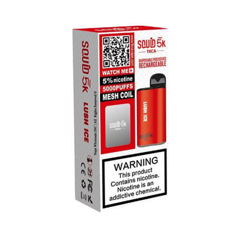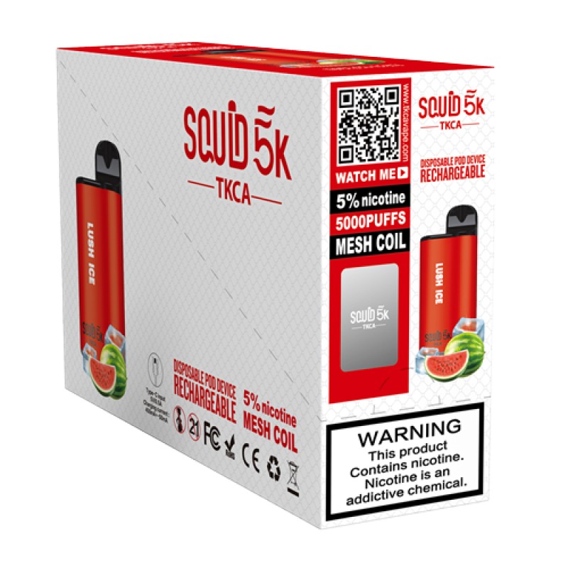 The Squid 5K disposable vape pod is a device without the hassle or worries of refilling and recharging. This device features a draw-activated firing mechanism from Squid. This Squid 5K Disposable Pod Device is a pre-filled nicotine salt e-liquid disposable vape. It contains 5% (50mg) nicotine salt strength and a mesh coil for true to taste flavor. It contains a rechargeable battery to ensure you're getting the most bang for your buck. It's very small and discreet that fits in the palm of your hand. It’s a perfect device for those who are always on the go and don’t like carrying a lot of stuff for their vaping needs.  Check out our collection of disposable vape bundles!